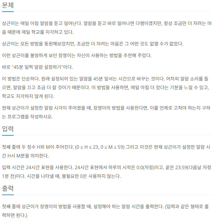 | [파이썬/Python] 백준 2884번 알람 시계 (0) | 2024.06.28 |