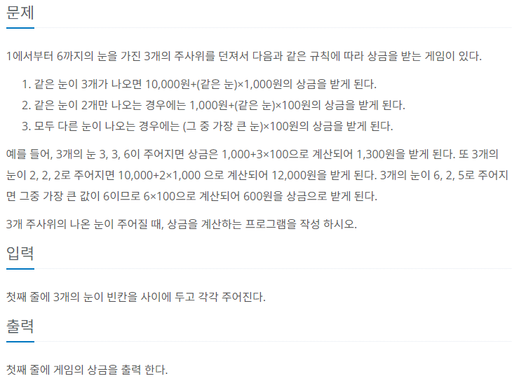 | [파이썬/Python] 백준 2480번 주사위 (0) | 2024.06.28 |